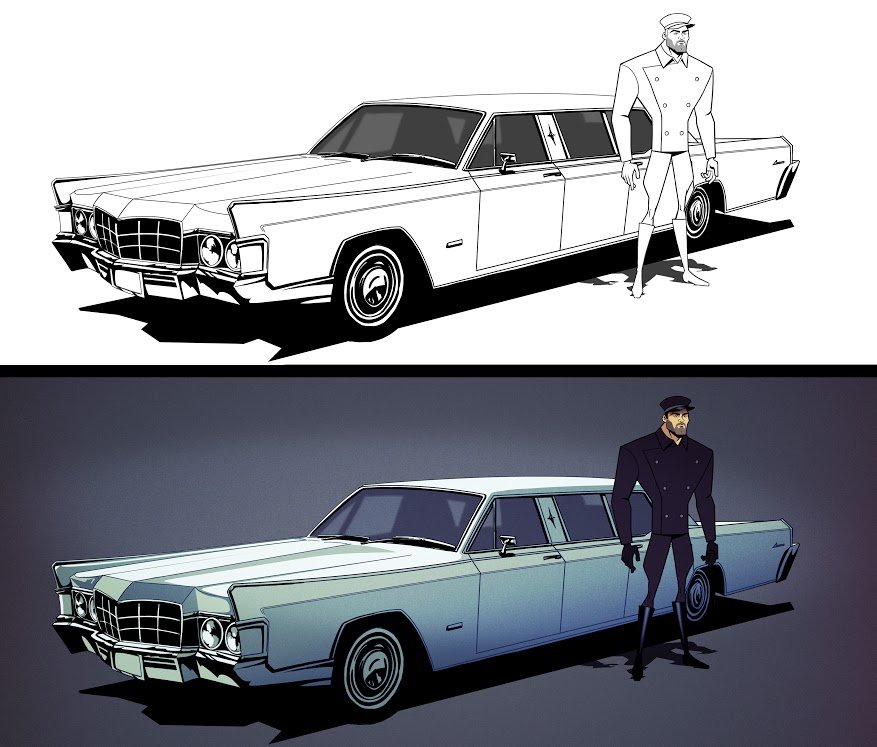 Sketch I created on how to treat the cars in the show.