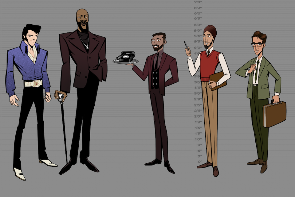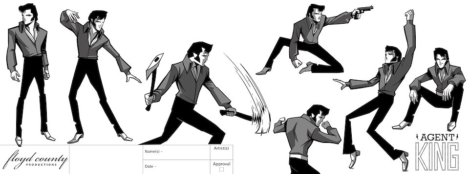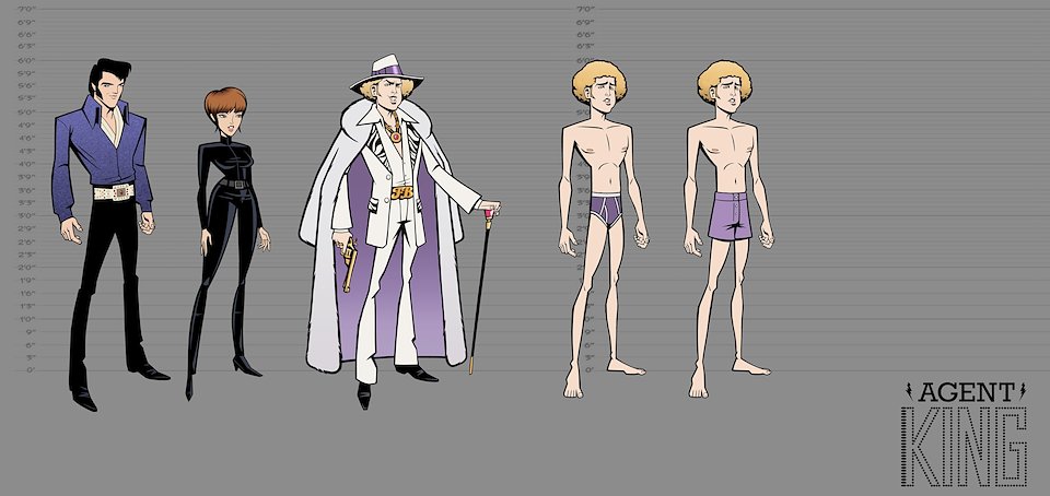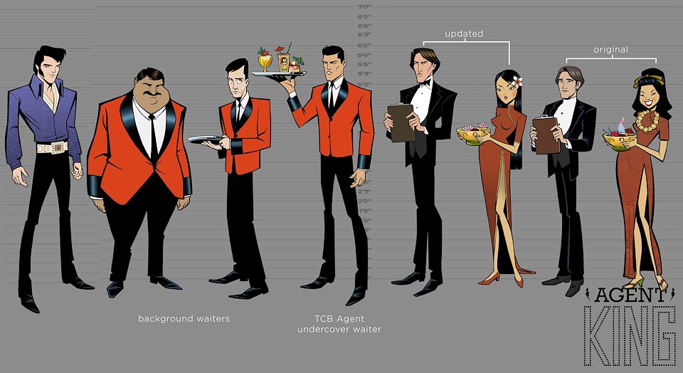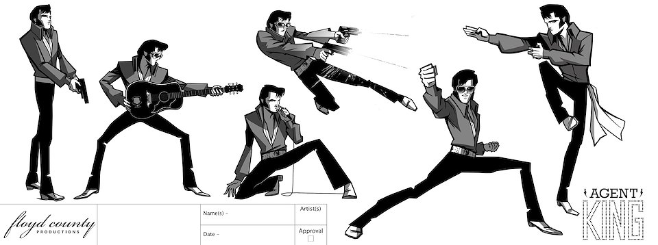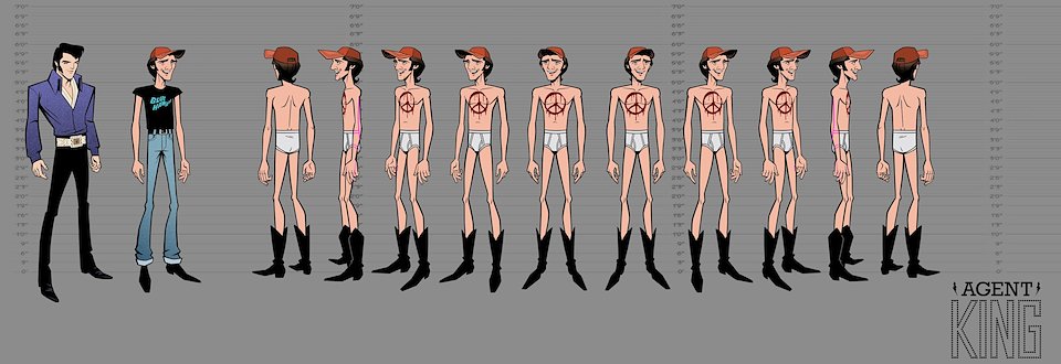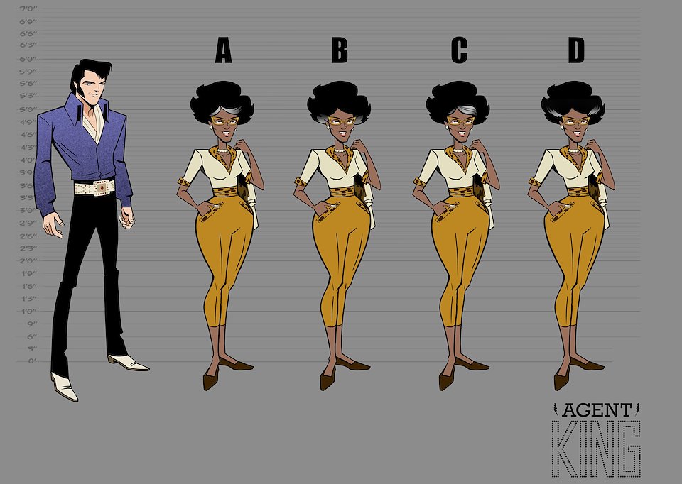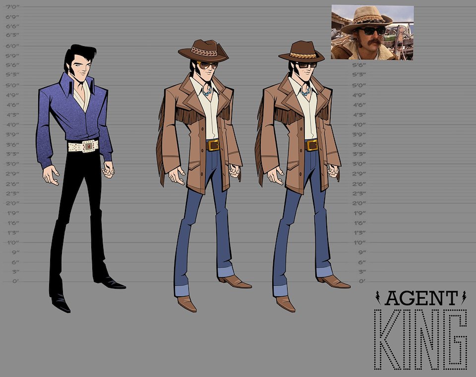 When we first began work on Agent Elvis, our Art Director (Todd Redner) and other designers were not able to join the team right away. I ended up designing environments and characters and working with my team to develop the look of the show. Much of my work was translating Robert Valley’s designs into characters that could be easily animated.