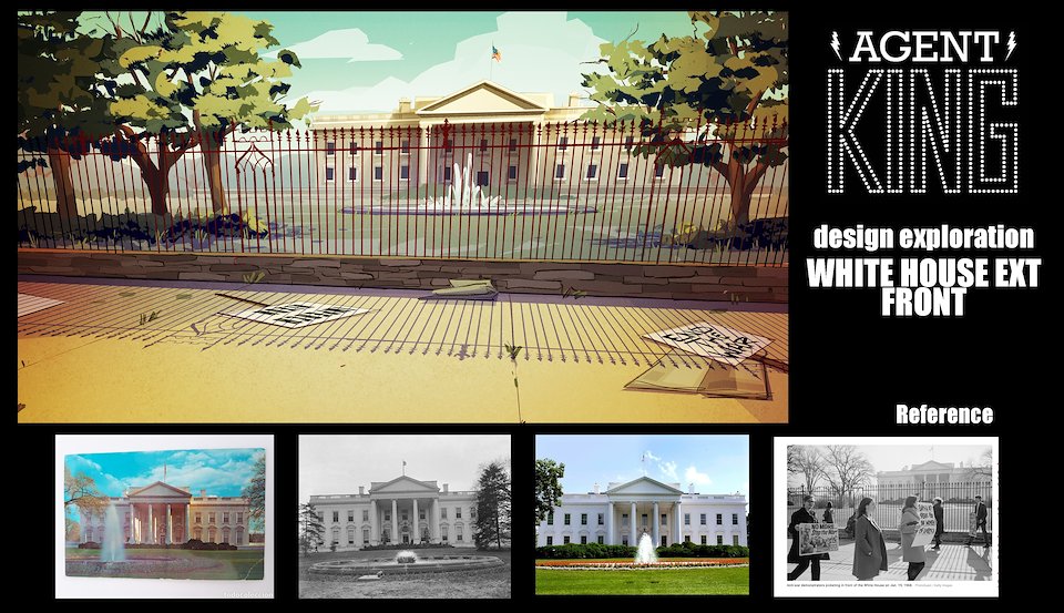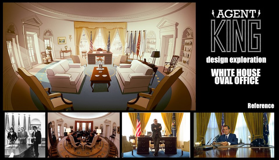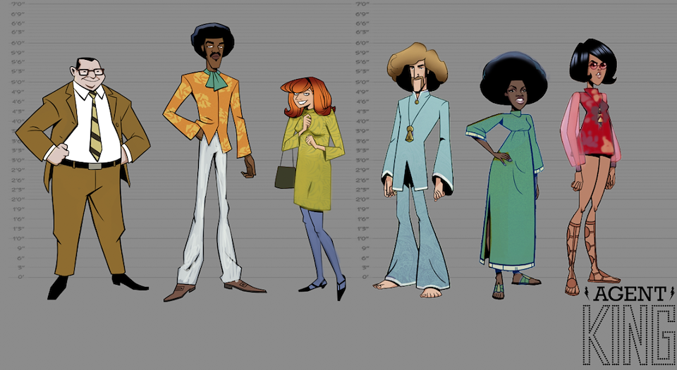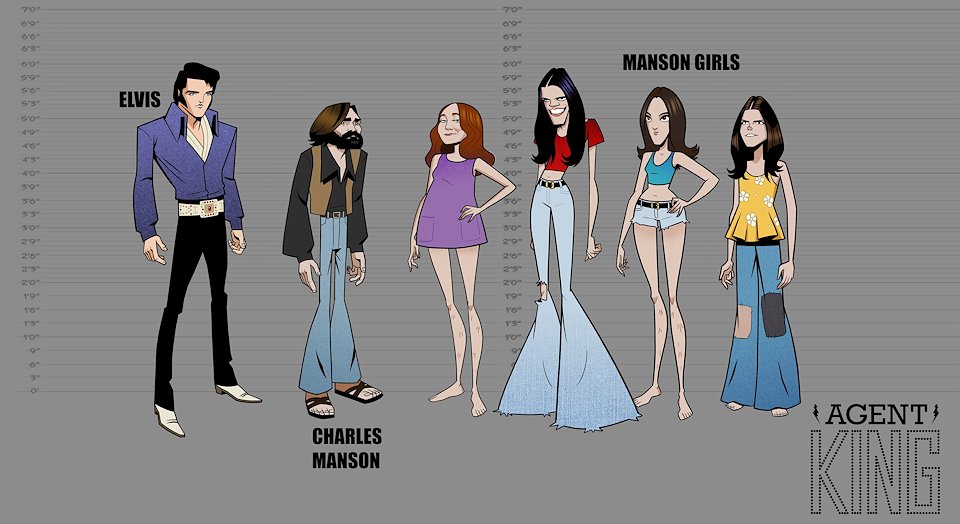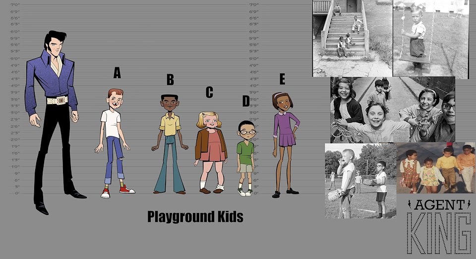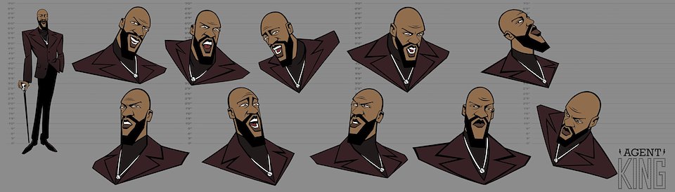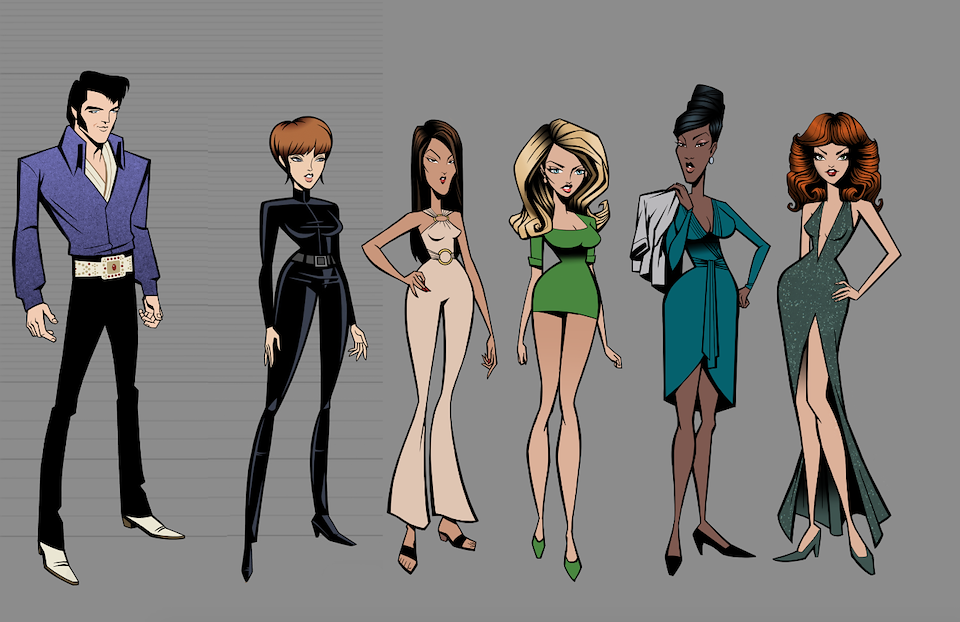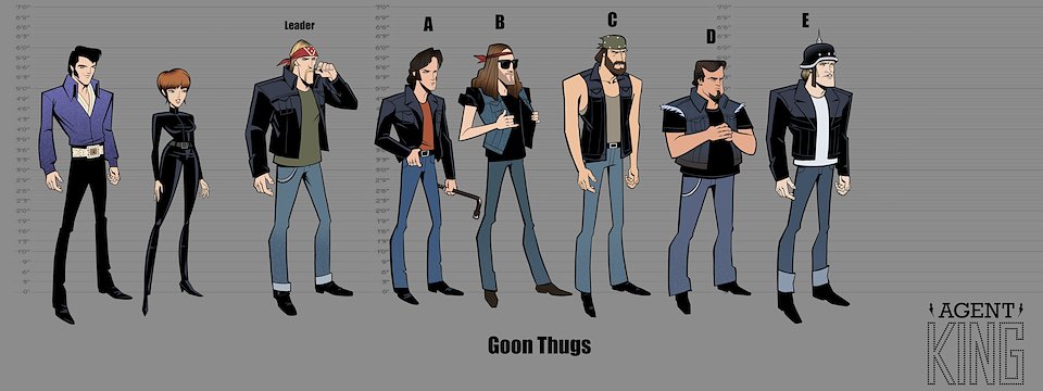 When we first began work on Agent Elvis, our Art Director (Todd Redner) and other designers were not able to join the team right away. I ended up designing environments and characters and working with my team to develop the look of the show. Much of my work was translating Robert Valley’s designs into characters that could be easily animated.