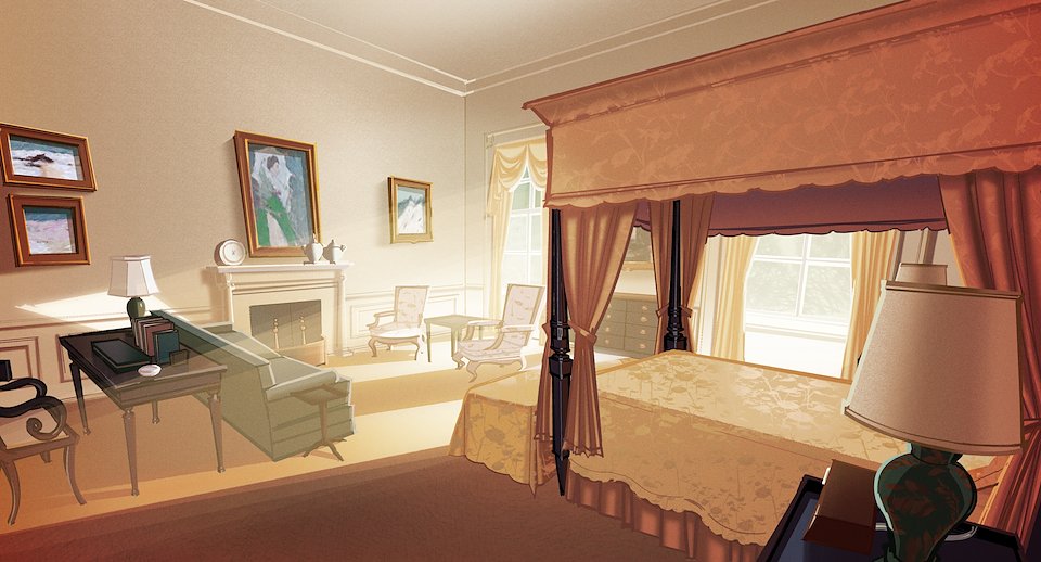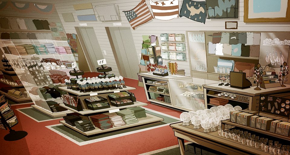 Background treatment by Background Director Kim Feigenbaum.
