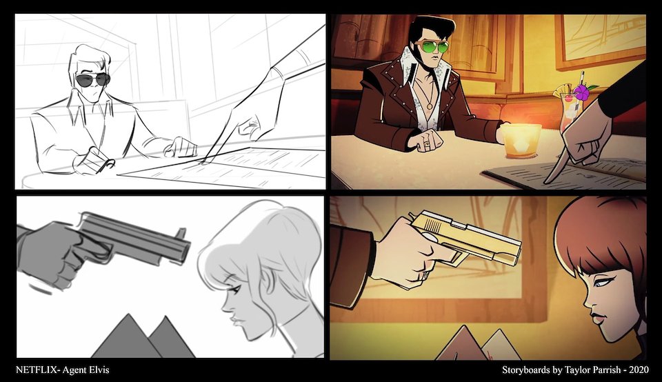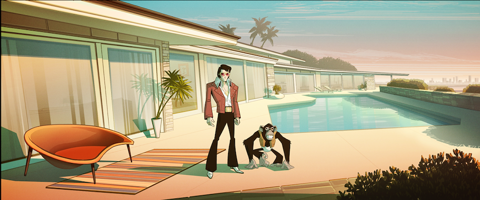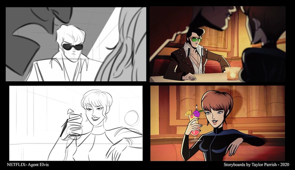 In 2020 right as the Pandemic was beginning, I was asked by Floyd County Productions and Sony Pictures Animation to Produce and Supervise Direct a new show called “AGENT ELVIS.” I was thrilled! The art was inspired by Robert Valley (whom I love), and the voice cast was killer.
