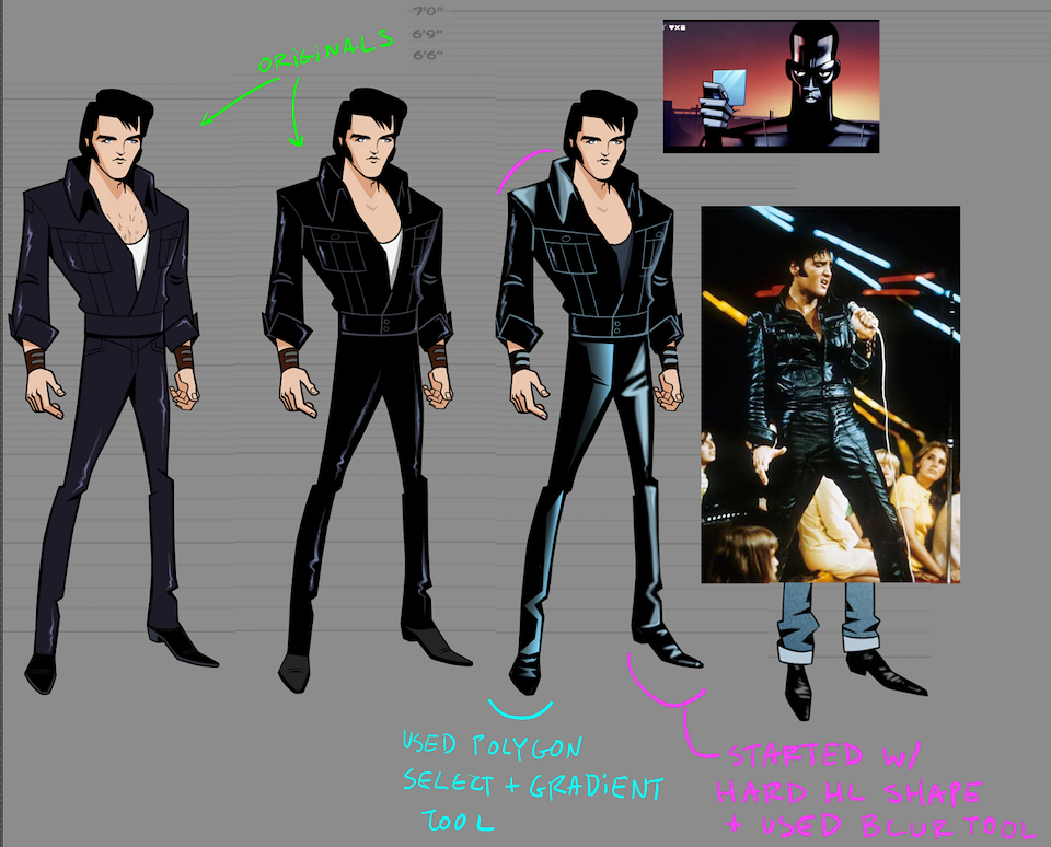 Early Design work I did to establish Elvis.