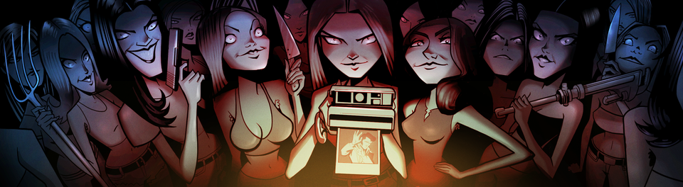 I drew this to set the tone for the Manson Girls. Colors by Kim Feigenbaum.